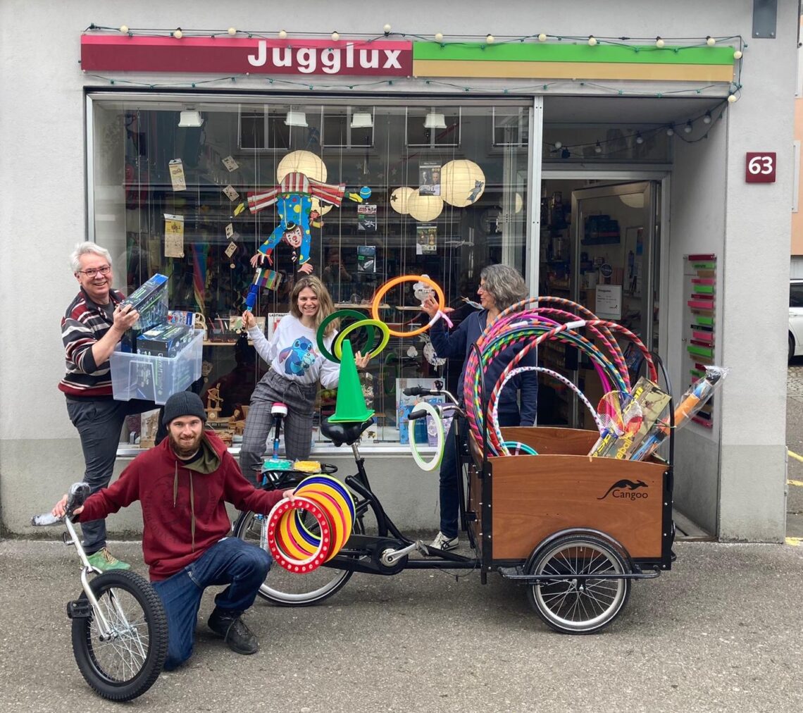Spielen – jonglieren – überraschen». Jugglux führt ein auserlesenes Sortiment an sinnvollen Spielwaren: Jonglierartikel, Gesellschaftsspiele, Drachen, YoYos, Einräder und vieles mehr!